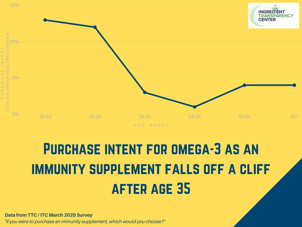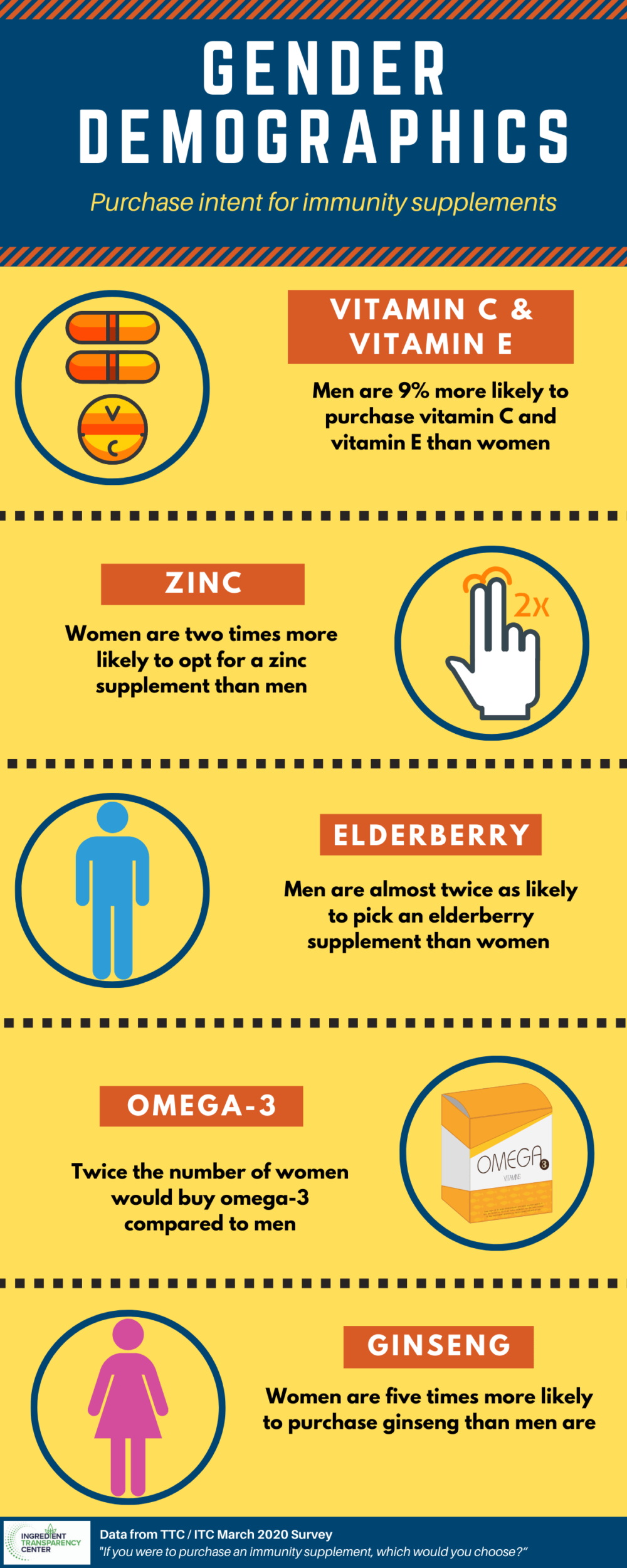 Meanwhile there is a trend towards increased purchase intent for elderberry, vitamin C and vitmain E as we age.