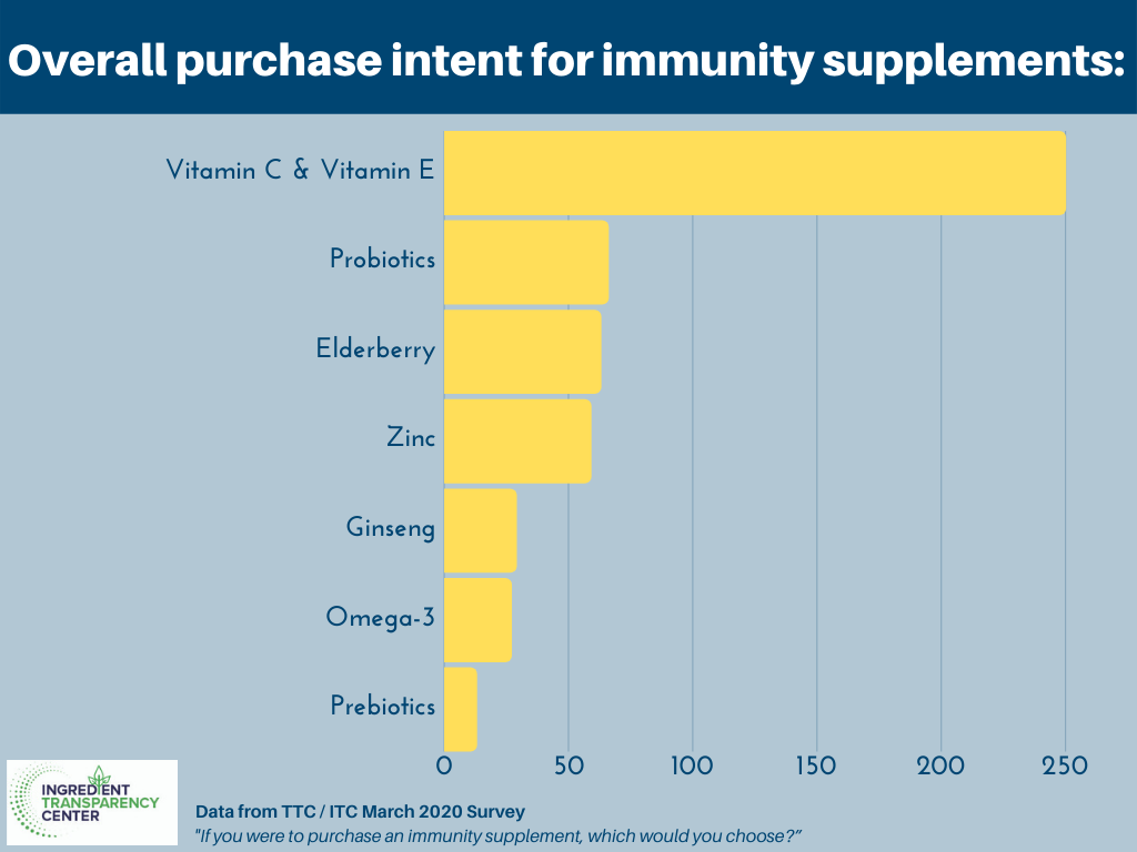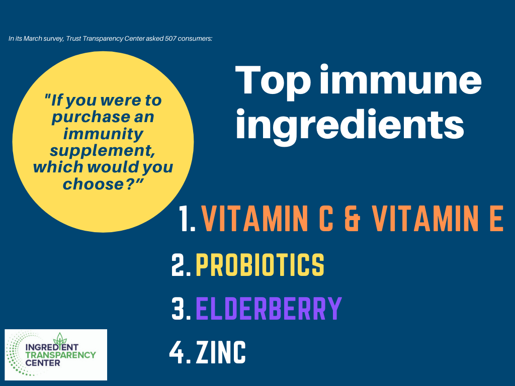 In its March survey, Trust Transparency Center asked 507 consumers about their perception of supplements linked to immune benefits.